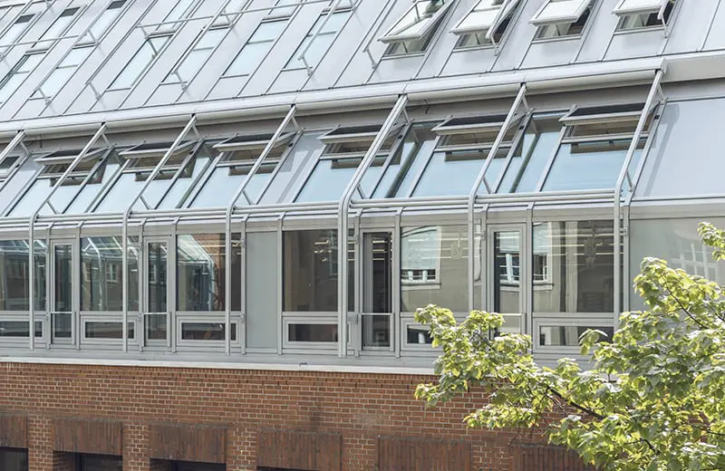 – Erneuerung der Pfosten-Riegel-Fassaden und Überkopf-Verglasungen (EnEV 2013), ca. 520 m2