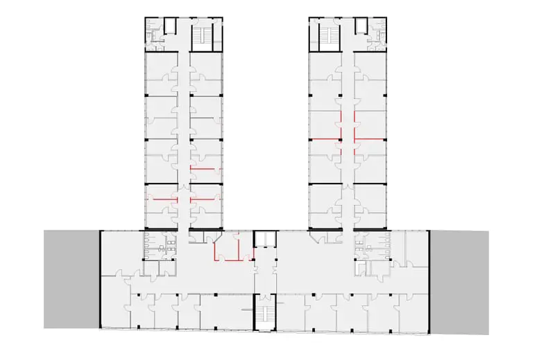Die Maßnahme erfolgte in zwei Bauabschnitten. Im Bereich des Sozialbürgerhauses wurde die Umsetzung geschossweise durchgeführt, um den laufenden Betrieb gewährleisten zu können. Die Koordination der Ausführung mit dem Umzugsmanagement des Nutzers erforderte eine kontinuierliche und enge Abstimmung. Die Baustellenlogistik sowie Schutz- und Sicherheitsmaßnahmen waren in Anbetracht des laufenden Betriebs und des Parteiverkehrs gleichfalls präzise und durchgängig zu steuern und zu kontrollieren.